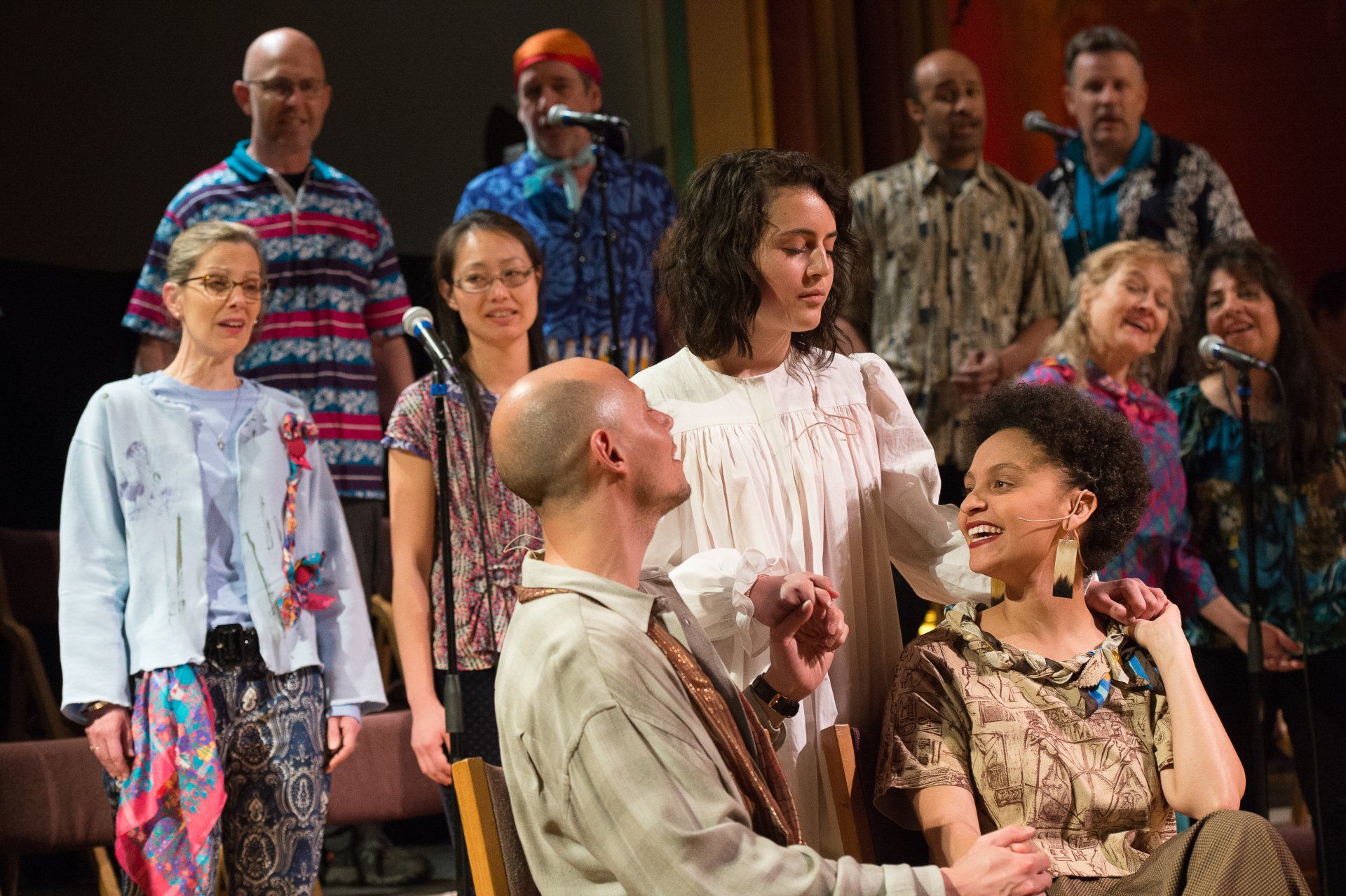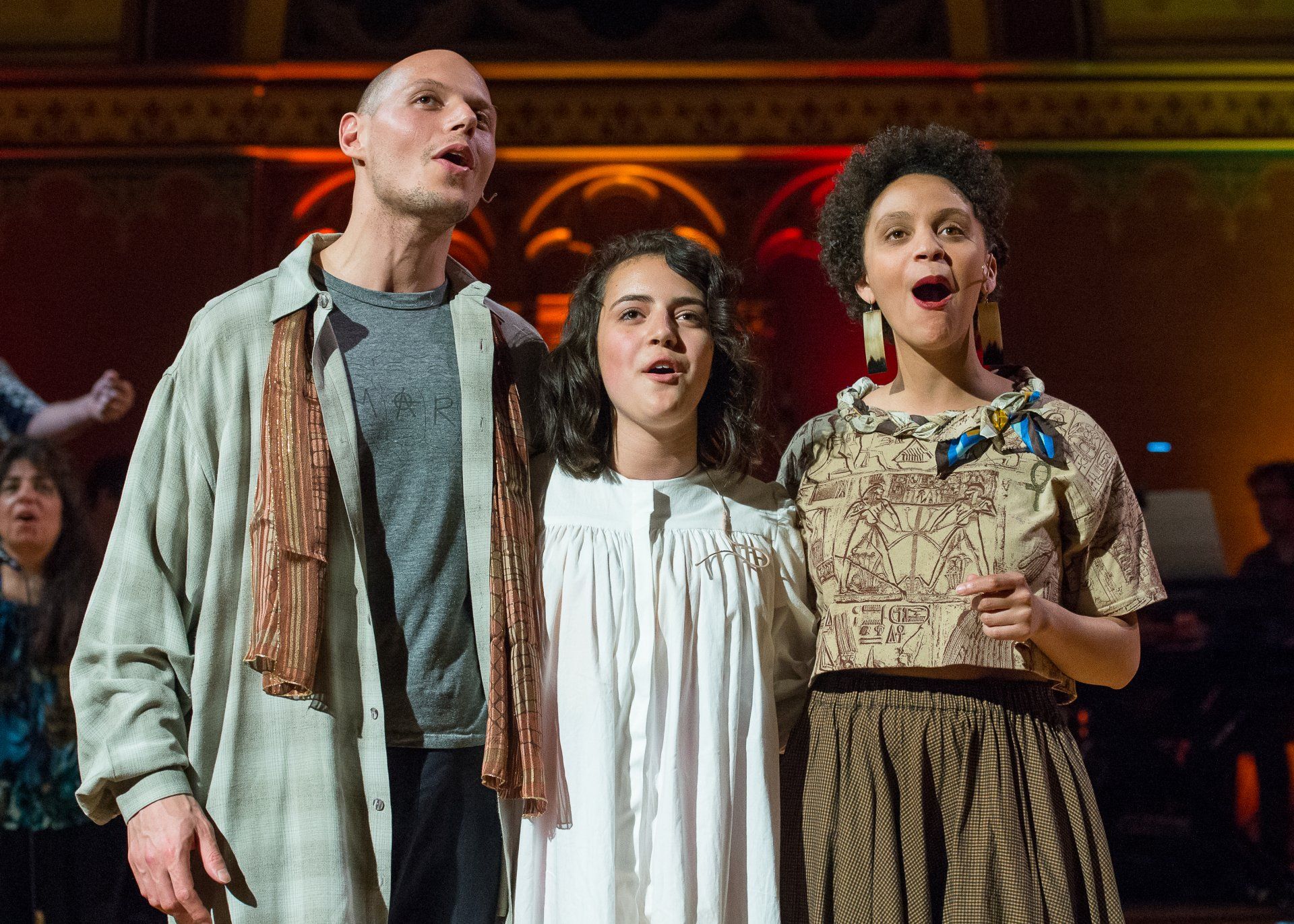 The dreaming Child seeks guiding visions. In a first vision the child is visited again by Grandfather’s Spirit, he sings of the child’s potential to become “a risk taker, an earth shaker, a peace maker.” But then, in a second vision, the many-headed monster HidesItsFace reveals a world of human cruelty, disrespect, ignorance and sorrow. The child is overwhelmed and questions whether its spirit is truly strong enough to face the world that the humankind has made. The child has a third vision in which Grandparent’s Spirit responds to each fear with support and compassion, promising a continuing presence on the journey that is life.