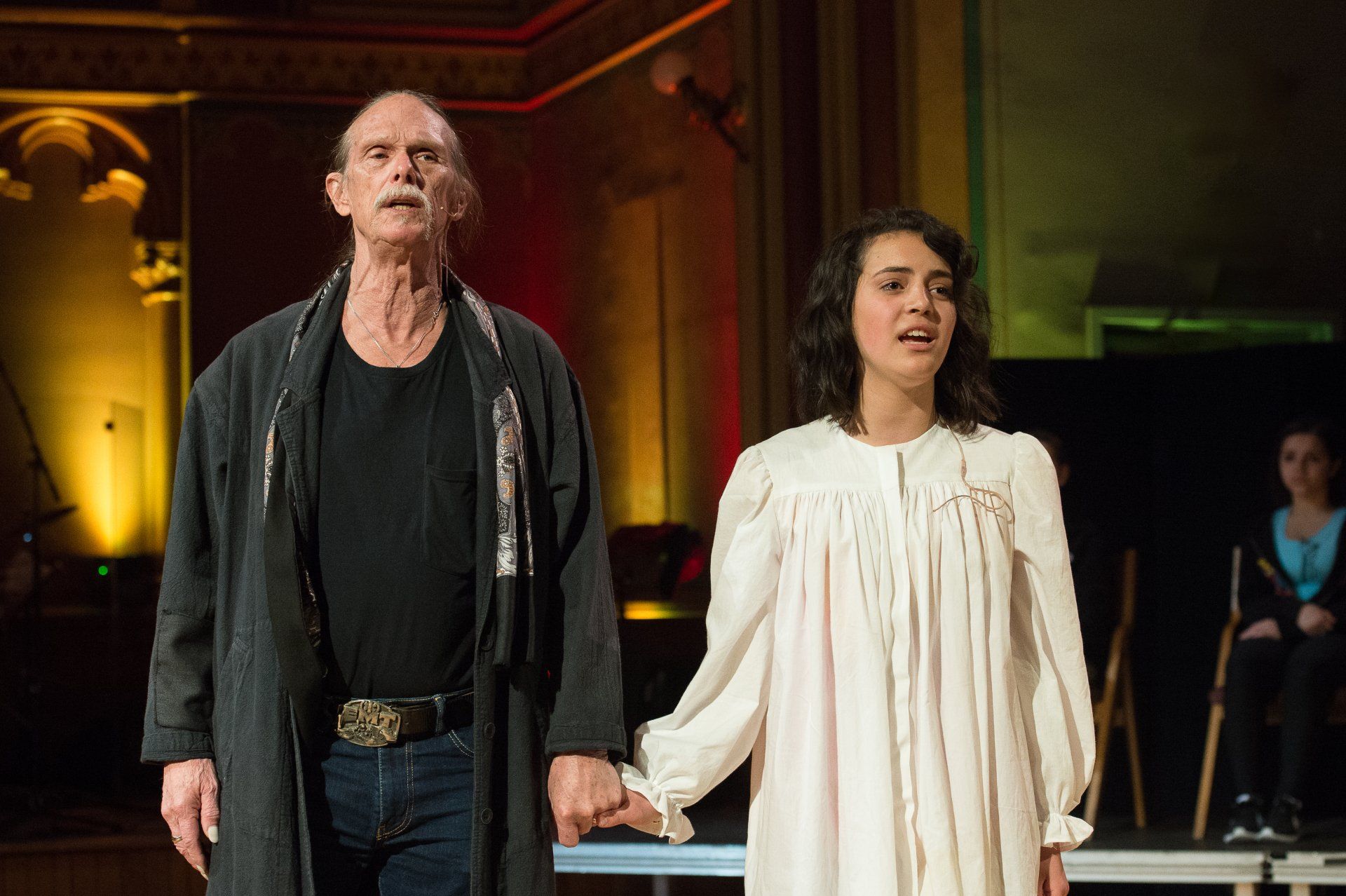 The dreaming Child seeks guiding visions. In a first vision the child is visited again by Grandfather’s Spirit, he sings of the child’s potential to become “a risk taker, an earth shaker, a peace maker.” But then, in a second vision, the many-headed monster HidesItsFace reveals a world of human cruelty, disrespect, ignorance and sorrow. The child is overwhelmed and questions whether its spirit is truly strong enough to face the world that the humankind has made. The child has a third vision in which Grandparent’s Spirit responds to each fear with support and compassion, promising a continuing presence on the journey that is life.